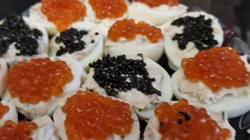 Фаршированные яйца тунцом и сливочным сыром с красной и чёрной икрой 🐟