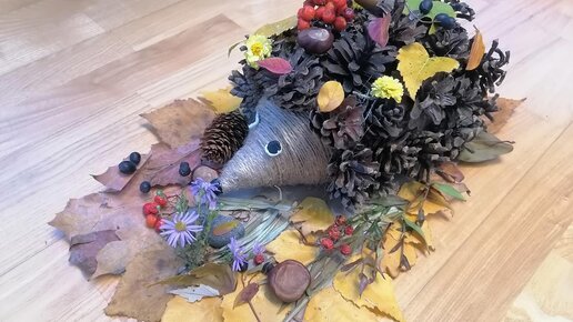 Осенняя поделка из шишек и листьев (даров природы). Ежик в лесу.