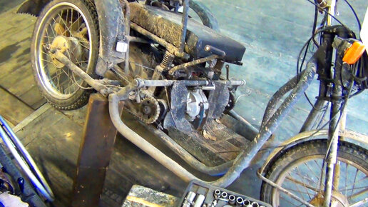 Починили уникальный трайк, теперь запускается, переделал колесо на мотоприводе.
