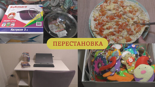 Переставляю мебель в комнате и готовлю пиццу на сковороде