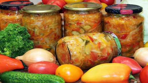 Очень вкусный, сочный и ароматный салат из овощей на зиму «Краски осени». Заготовки на зиму