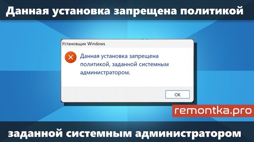 Данная установка запрещена политикой заданной системным администратором в Windows 11 и 10 (Решение)