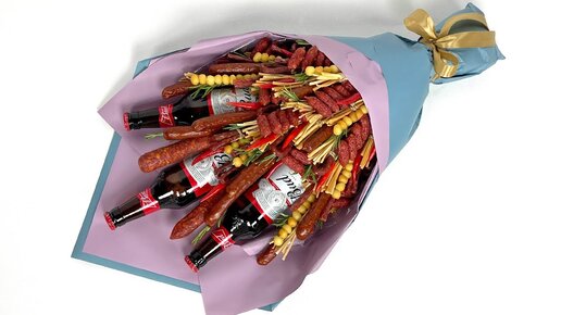Мясной букет для мужчин с бутылками пива || Пивной букет из еды || Подарки
