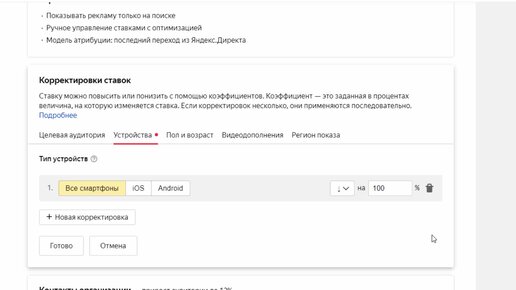 Корректировки ставок в Яндекс Директ по мобильным устройствам