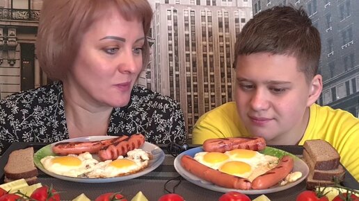 Завтрак выходного дня 🍳🥓☕️ЯИЧНИЦА и СОСИСКИ ГРИЛЬ. МУКБАНГ. ЕДА