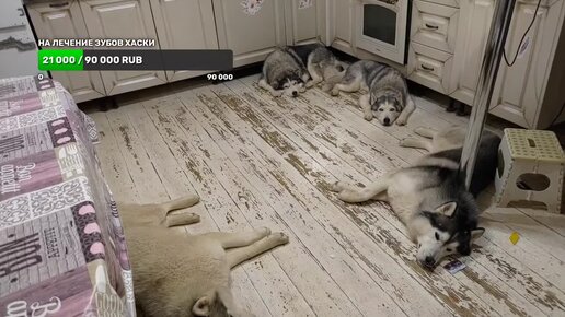 хаски голодные, но сено кушать не хотят. У Кота Лео шишка на пузе