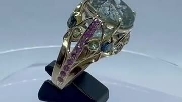 Кольцо с Аквамарином. Золотое кольцо с крупным Аквамарином, бриллиантами, сапфирами, турмалинами и хризолитами. Ручная работа.