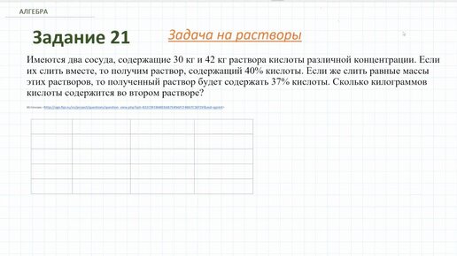 Задача на проценты. Задача №3. Растворы. Разбор задания №21 ОГЭ
