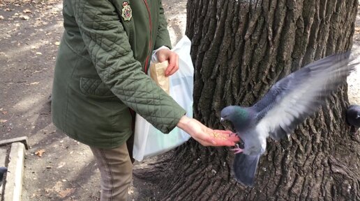 Кормим голубей с рук