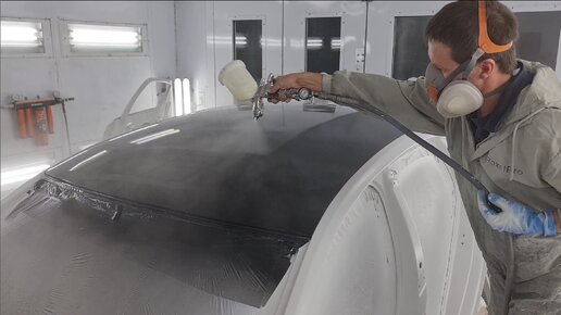 Полная покраска Volkswagen Polo. Крыша черная, все остальное белое. Красим все за один раз