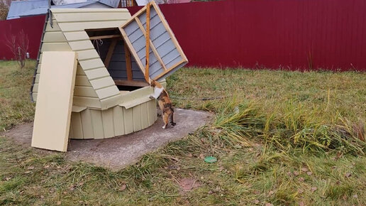Чужая кошка любит гулять на нашем дачном участке. Накормили животное кусочками шашлыка. Кошка осматривает садовый участок и уходит гулять