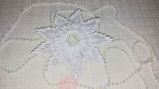 Нежная декоративная двухсторонняя снежинка из ватных палочек
