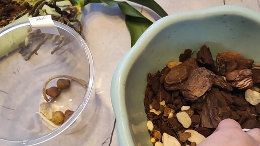 Пересадка орхидеи в дешёвую кору, мох - фитиль. Топуджин паста.