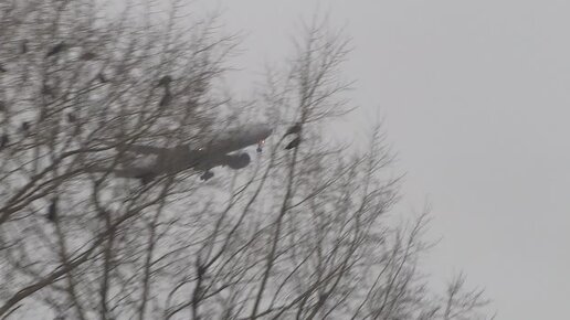 Самолет Аэрофлота - огромный Боинг-777 вылетел из-за деревьев в тумане.