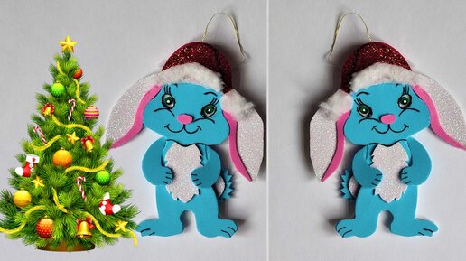 Игрушка на ёлку, кролик, символ 2023 из фоамирана или картона.