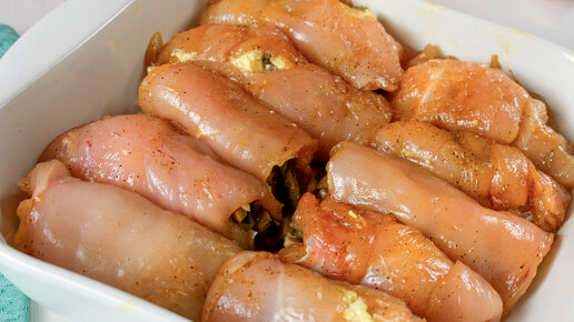 Узнала в ресторане! Это самые вкусные куриные грудки, которые я ела. Куриные рулетики с грибами и сыром в духовке рецепт.