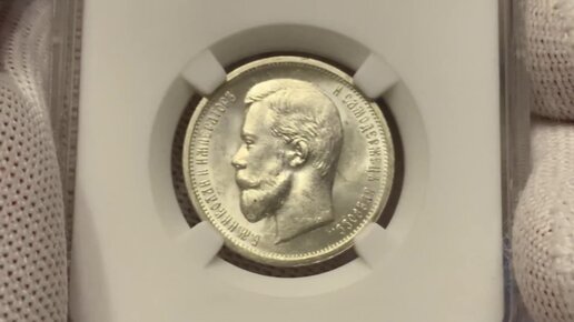 Монеты времени правления Николая II. Серебряные монеты. 50 копеек 1912 г. (ЭБ) в слабе ННР MS64.