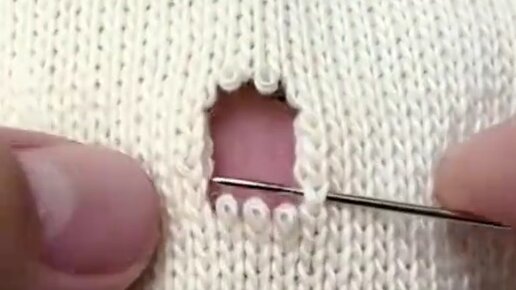 Штопка дырки в свитере иглой