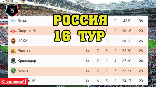 Чемпионат России по футболу (РПЛ). Результаты. Расписание. Таблица. 16 тур.