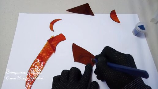 Вырезаем форму серп (полумесяц). Рез стекла. Витраж Тиффани