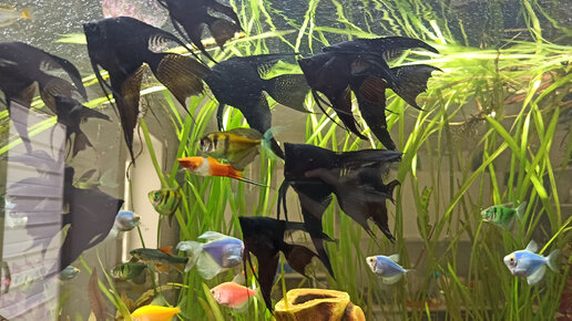 Вуалевые скалярии черный бархат. Наконец переехали в 300 литров)