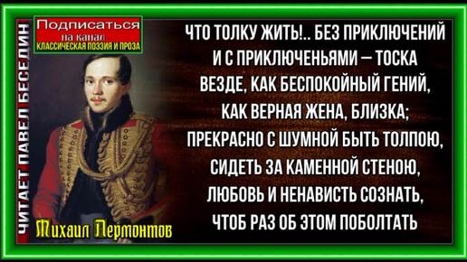 Что толку жить!.. Без приключений Михаил Лермонтов читает Павел Беседин