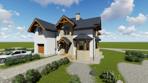 Проект дома 199 м2 с мансардой, гаражом и террасой - DTE20