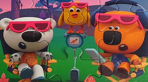 Кеша и Тучка тестируют новое изобретение. Собираем пазлы для малышей с героями мультфильма Мимимишки.