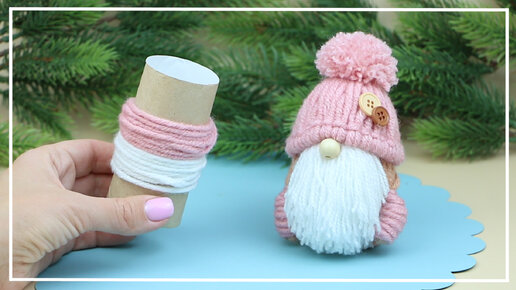 Уютный Милый Гномик из Ниток и Втулки - Новогодние поделки!