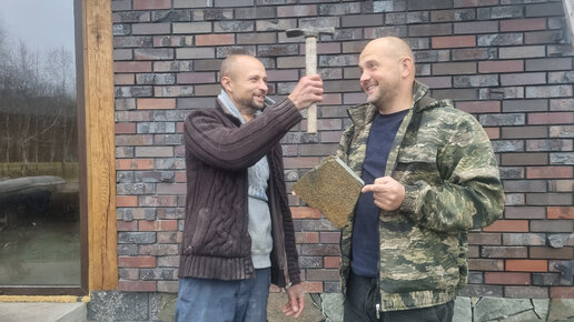 Зарыбление необычной рыбы в пруд. Цоколь из демлера облицовываем камнем.