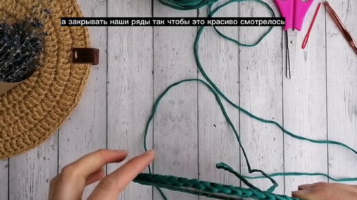 Показываю, как вяжу стенки корзинки галочками в раскол