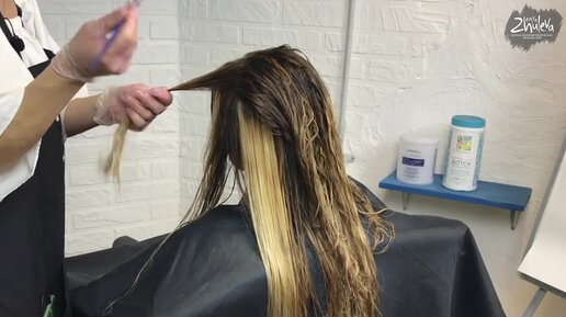 Балаяж в несколько прядей. Демонстрирую вариант плавной растяжки цвета для густых волос