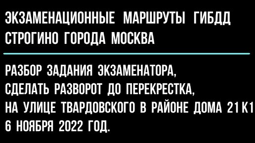 Разбор задания экзаменатор "Сделать разворот до перекрестка, на улице Твардовского в районе дома 21 к.1.