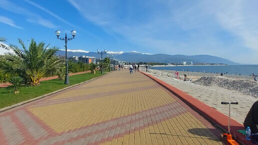Имеретинская набережная 08.11.22🌅 🌊Красота вокруг впечатляет: с одной стороны море, с другой снежные горы🏔🌊