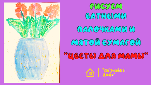 Рисуем ватными палочками и мятой бумагой "Цветы для мамы"
