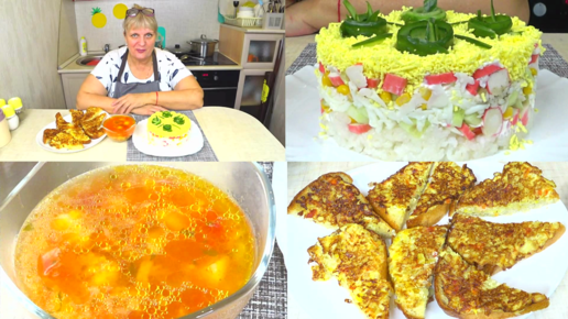 Меню! Готовим из самых простых продуктов ! Крабовый салат. Томатный суп. Горячие бутерброды с луком!