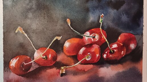 Вишни акварелью.