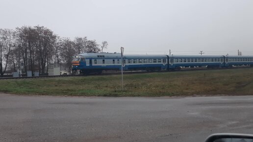 Встреча дизель-поезда ДР1а на переезде