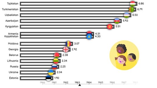 Коэффициент рождаемости, детей на одну женщину в странах СНГ и бывшего СССР.Статистика.Инфографика