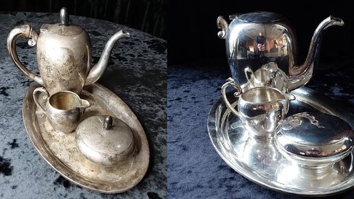 Очистка антикварного серебра. Чайный сервиз