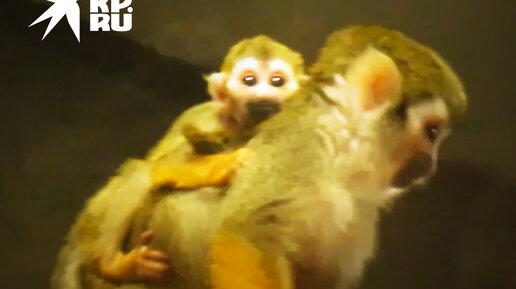 Беличий саймири путешествует на спине у мамы