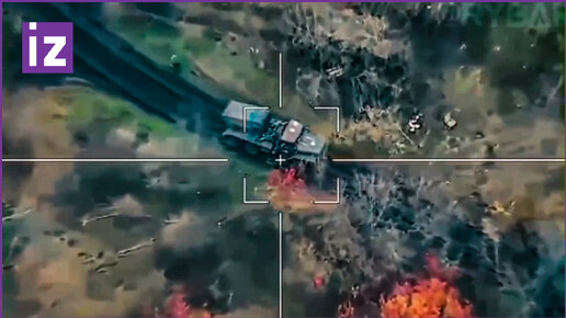Момент прилета "Ланцета" в движущуюся украинскую РСЗО "Град"