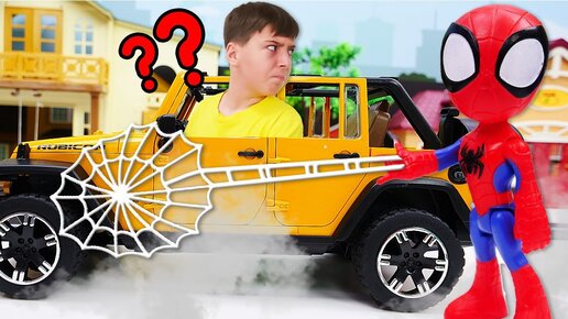 Паучок и его удивительные друзья против Зелёного Гоблина! Тачка Паучка в Автомастерской