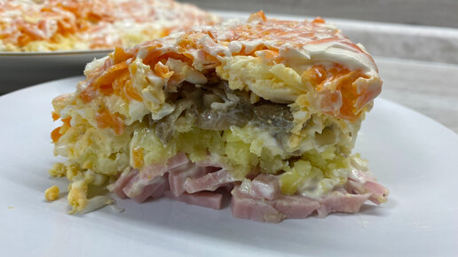 Слоёный САЛАТ с ВЕТЧИНОЙ и ШАМПИНЬОНАМИ. Если вдруг ваши гости не любят "Селёдку под шубой", то этот салат им понравится точно!