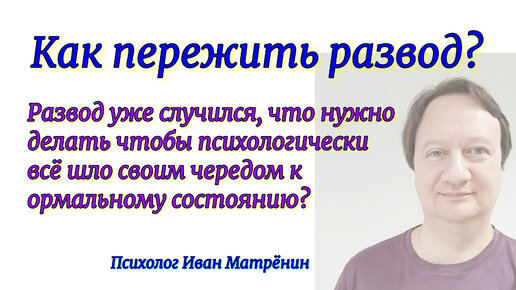 Как пережить развод? Развод уже случился, что нужно делать чтобы психологически всё шло своим чередом к нормальному состоянию?