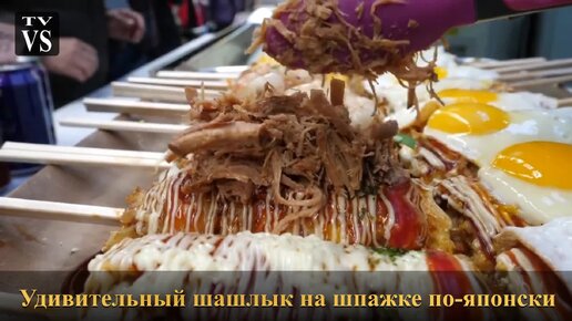 Необычный шашлык на огромной шпажке по-японски.