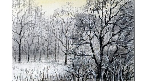 Первый снег. Рисунок сухой пастелью и угольным карандашом.