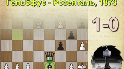 Старый добрый гамбит слона в гамбите королевском: прикольная партия с матом от Оскара Гельбфуса за белых: крушит Розенталя в Вене, 1873, 1-0