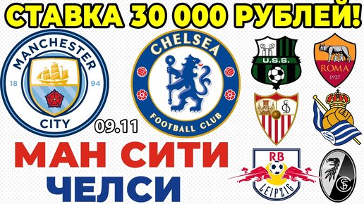 МАНЧЕСТЕР СИТИ - ЧЕЛСИ. СЕВИЛЬЯ - РЕАЛ СОСЬЕДАД. САССУОЛО - РОМА. ЛЕЙПЦИГ - ФРАЙБУРГ. АЙНТРАХТ - ХОФФЕНХАЙМ. ПРОГНОЗ И СТАВКА