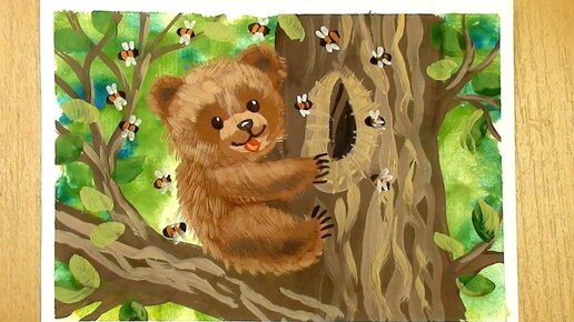 Как нарисовать медвежонка гуашью поэтапно. Рисунок медведя для начинающих.